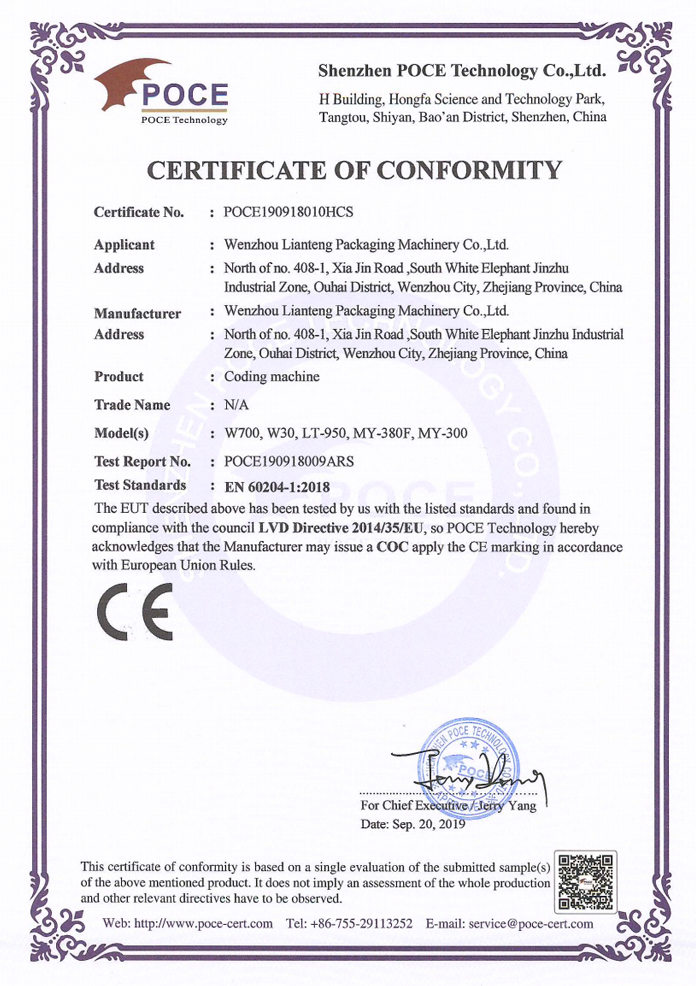 CE-LVD证书 打码机