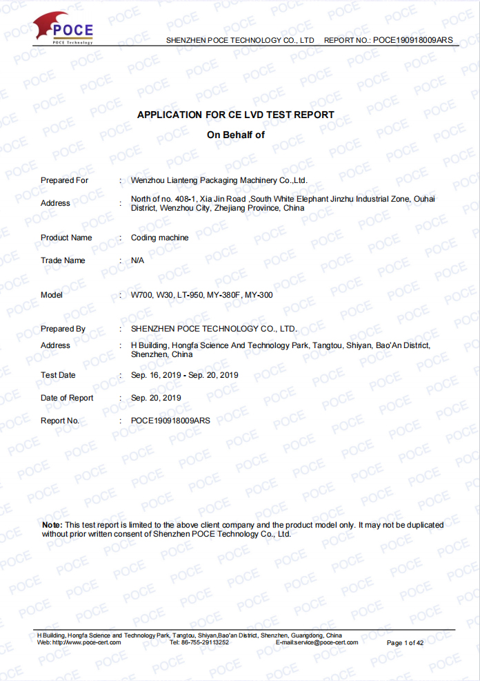 CE-LVD报告 打码机