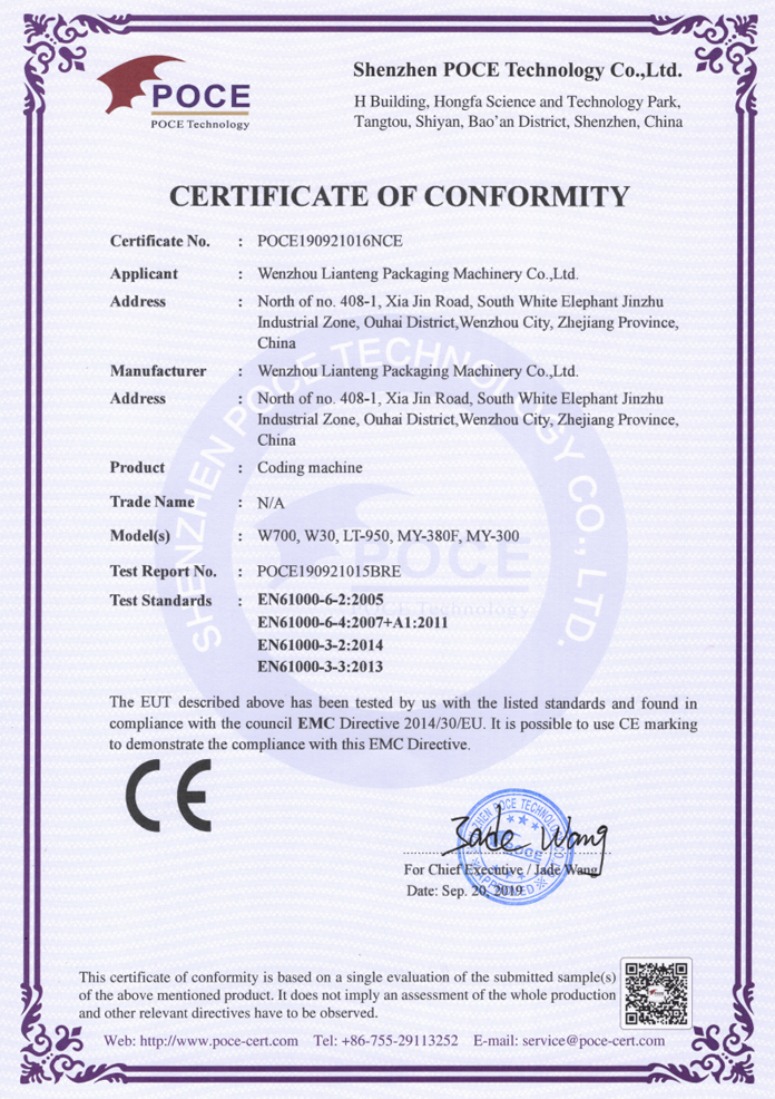 CE-EMC证书 打码机